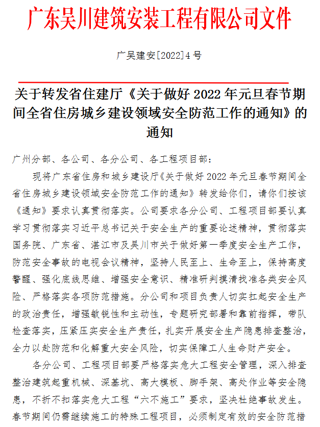 關于轉發省住建廳《關于做好2022年元旦春節期間全省住房城鄉建設領域安全防范工作的通知》的通知